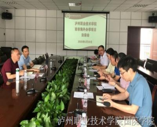5月20日,南非中国文化和国际教育交流中心经理王震宇来我校洽谈海外办学项目,学校副院长梁杰,发展规划与产学合作处处长、机械工程学院党总支书记、院长林乃昌,电子工程学院党总支书记、院长晏剑辉,郎酒学院党总支书记唐家州,信息工程学院党总支书记高娜,教务处副处长卢玲,国际学院副院长陈新宇等领导参加了洽谈会。会议在学校综合行政楼415会议室举行,会议由梁杰主持。