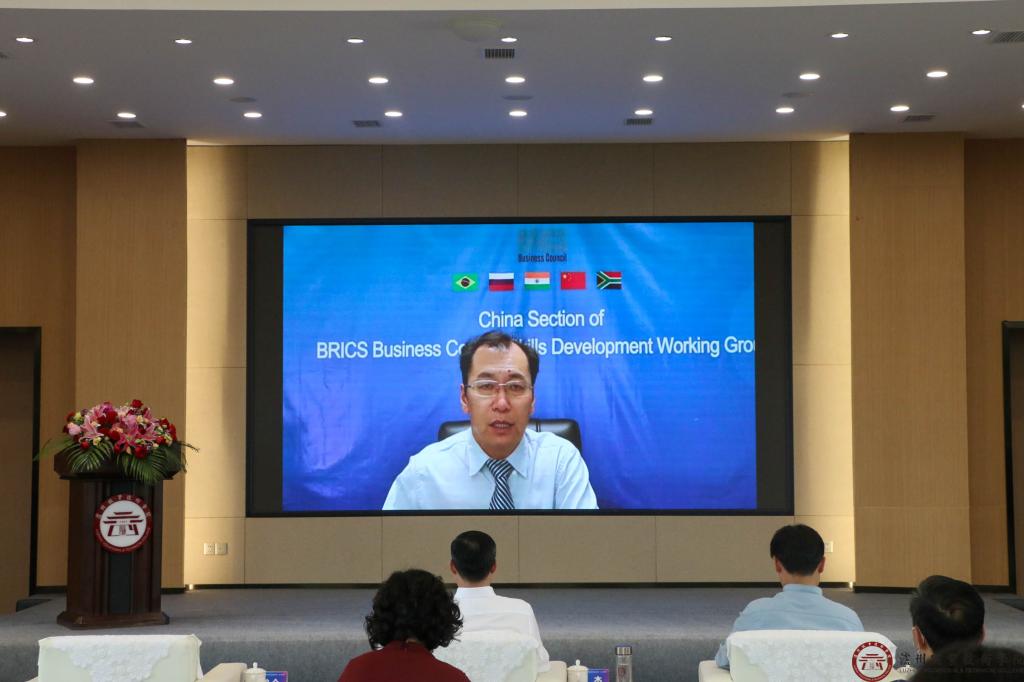 金砖国家工商理事会技能发展工作组主席、一带一路暨金砖国家技能发展国际联盟理事长、中国科协一带一路暨金砖国家技能发展与技术创新培训中心主任、金砖国家技能发展与技术创新大赛组委会执委会主席刘振英,