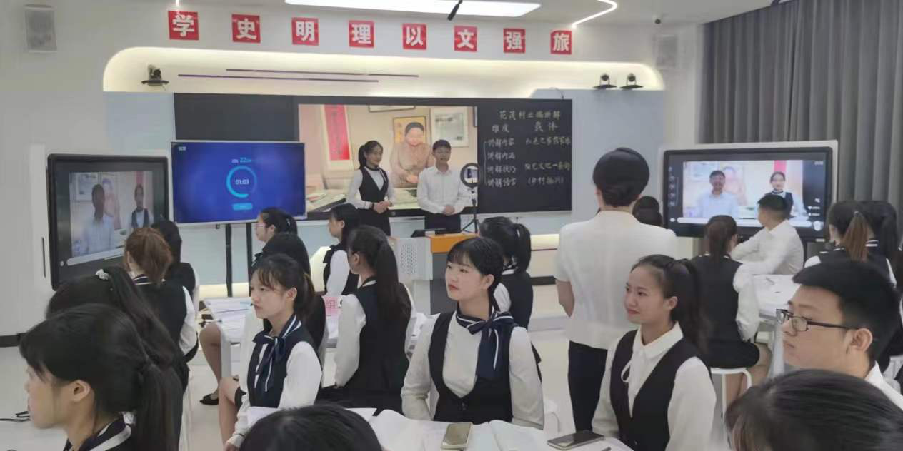 本次比赛中,课程团队结合建党百年,以历史遗址为载体,践行“岗课赛证”融通模式,在技能培养和评价方法中借鉴全国导游资格考试和全国职业院校大学生技能竞赛导游服务赛项标准,将工作岗位要求转化为课程教学内容,对接1+X“研学旅行策划与管理“证书要求,运用“五景五讲”的教学模式,开展沉浸式学习,夯实景点导游员讲稿撰写和景点讲解技能。在注重景点导游技能训练的同时,课程团队把四个景区分别对接“四史”,开发了课程思政体系,将学习革命传统、培养文化自信等贯穿于课堂教学全过程,在培养讲解技能的同时厚植家国情怀。