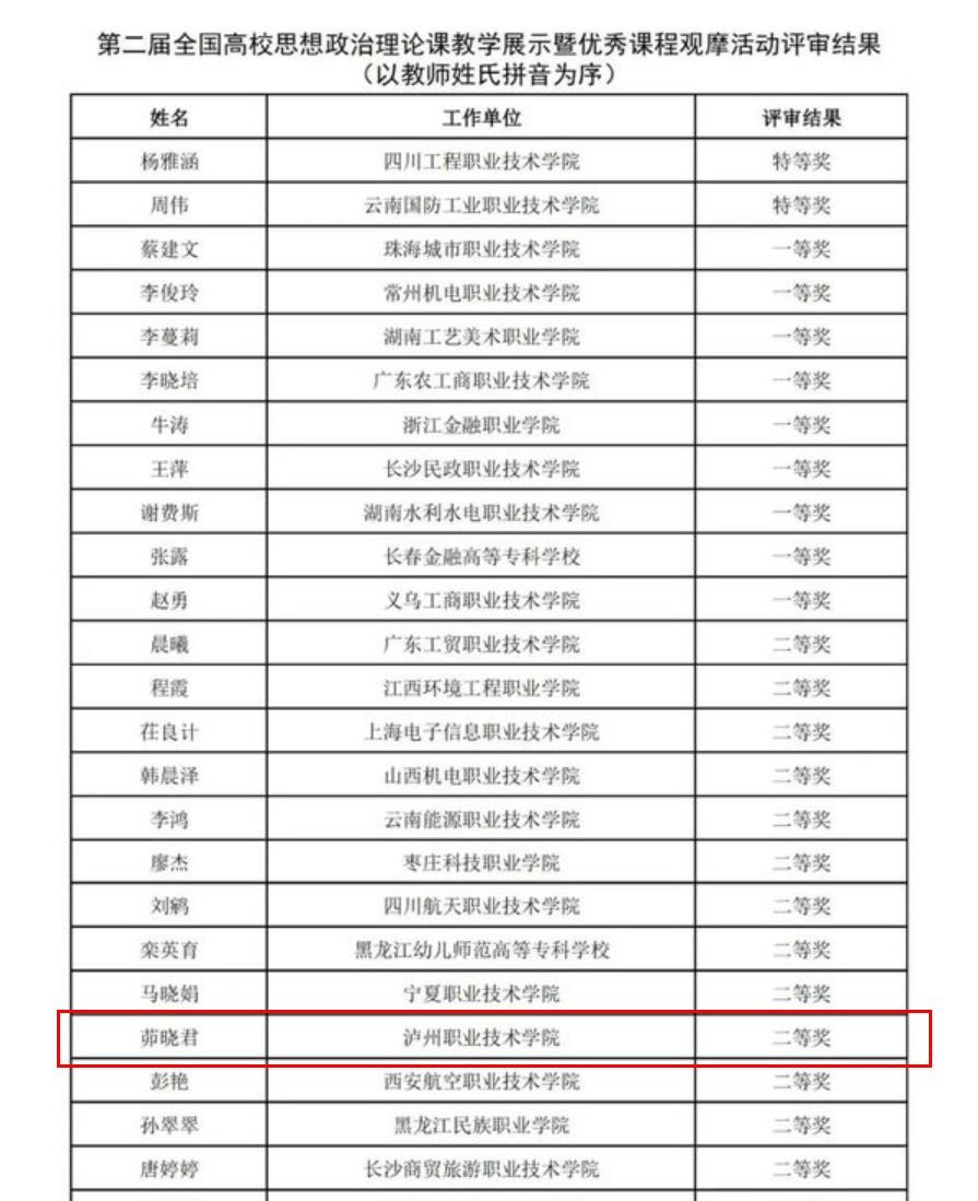 近日,教育部公布了第二届全国高校思想政治理论课教学展示暨优秀课程观摩活动评审结果,我校马克思主义学院院长、思政课教师茆晓君荣获二等奖。