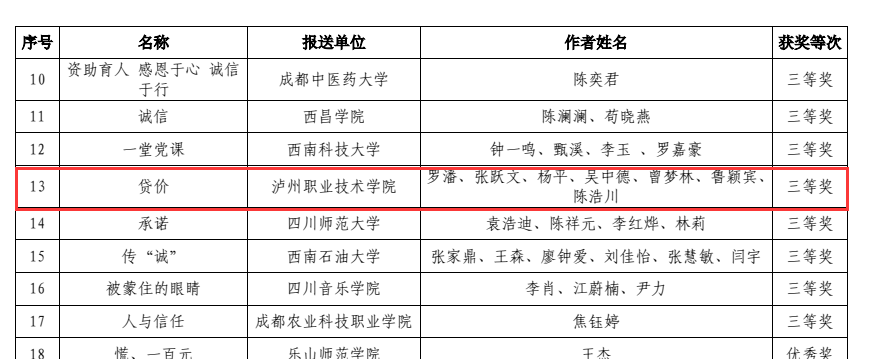 学校资助育人诚信教育作品《贷价》荣获省级三等奖