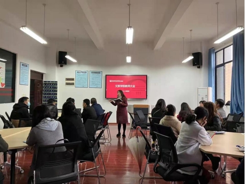 2022年4月1日,文旅学院在4316召开教师大会,全体教师参加,党总支书记、院长黄顺红主持会议。